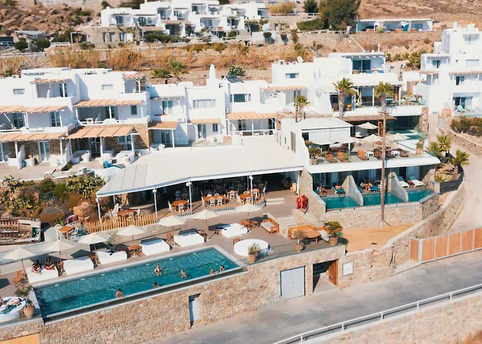 Das New Paradise Beach Resort - Adults Only liegt nur 5 km von Mykonos entfernt und bietet somit die perfekte Balance zwischen Ruhe und vibrantem Nachtleben. Der Strand ist direkt vor der Tür und lädt zu erholsamen Tagen in der Sonne ein.